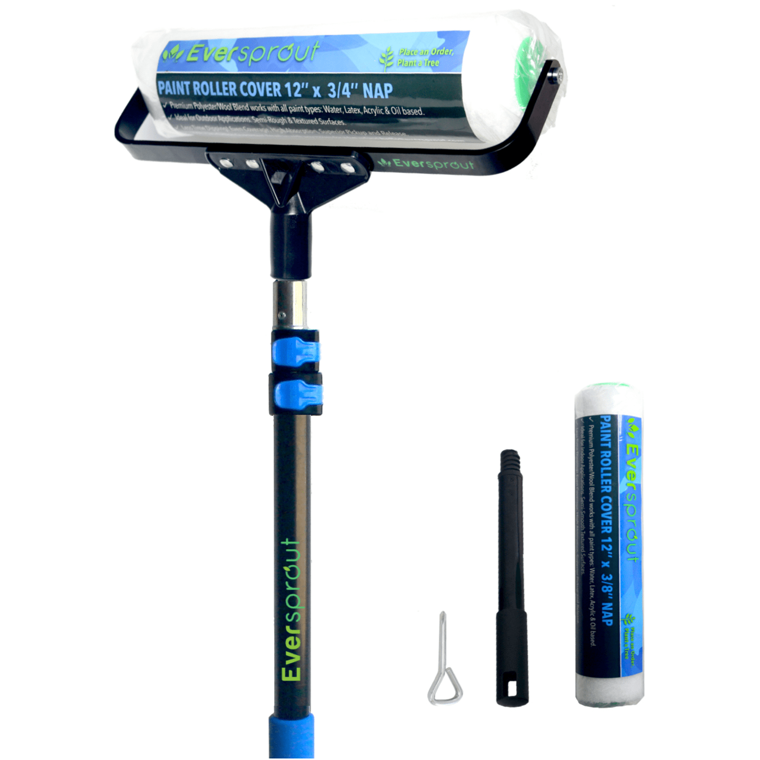 Eversprout 7 To 19 Foot Paint Roller Kit 25 Ft Reach Extra Wide 12 Inch Roller Frame Extension Pole 1x Poly Wool Roller Cover For Indoor Outdoor Works W All Paint Types Walmart Com